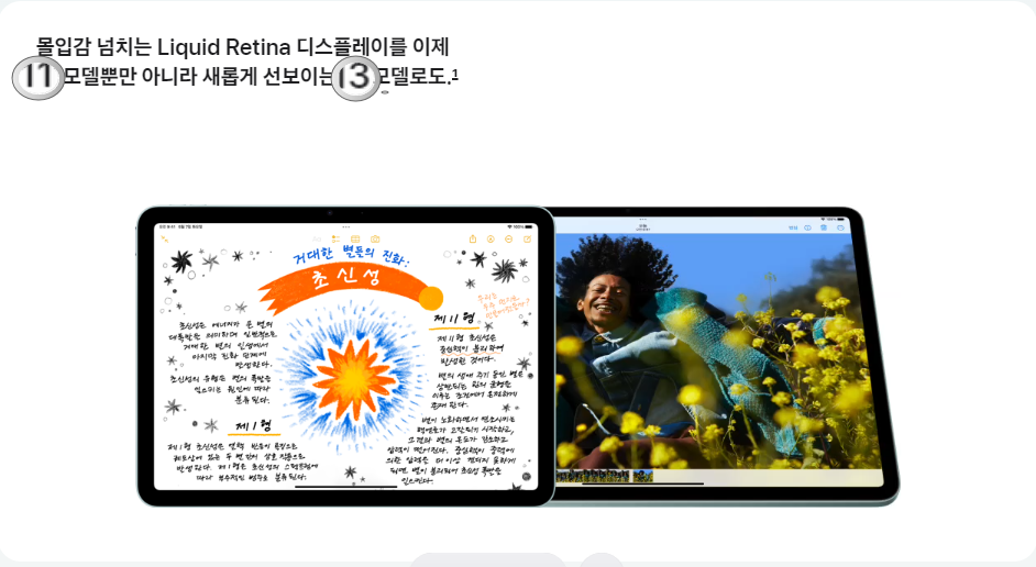"iPad Air 11은 가볍고 강력하며 아름답습니다. 수업 중에 필기하는 것부터 최신 게임을 하는 것까지 제가 필요한 모든 것을 갖추고 있습니다.