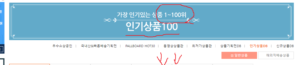 상품기획전을 클릭하면 상단 부분에 인기상품DB 가 있습니다.